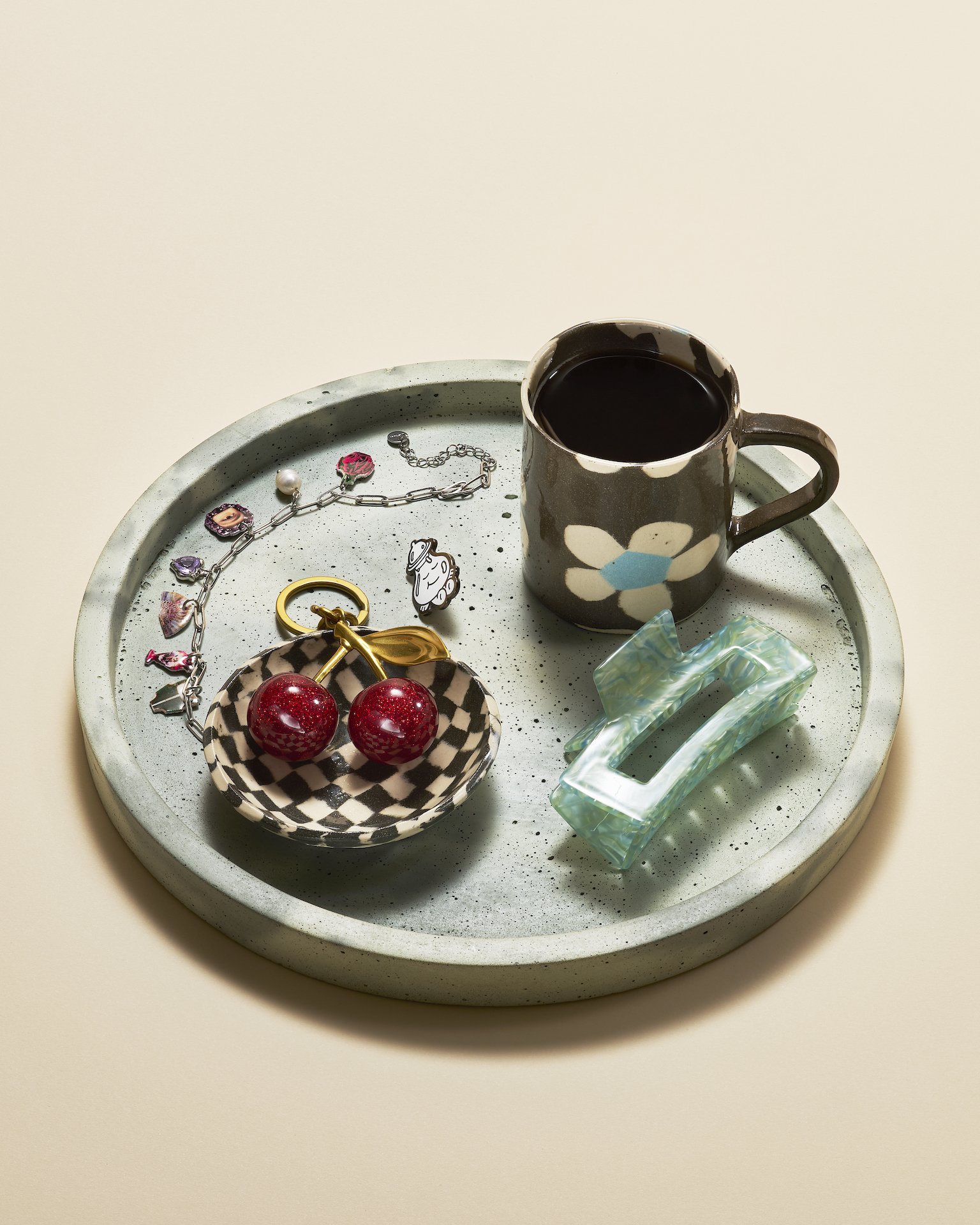 Some of the items for sale at the V&A East shop include ceramics by Deptford based Fern Taylor and bold trays by Hackney studio Smith & Goat.